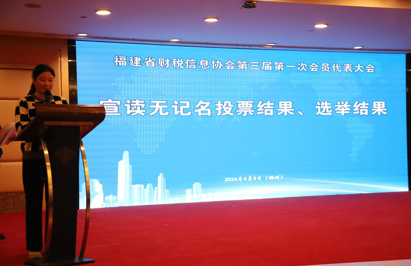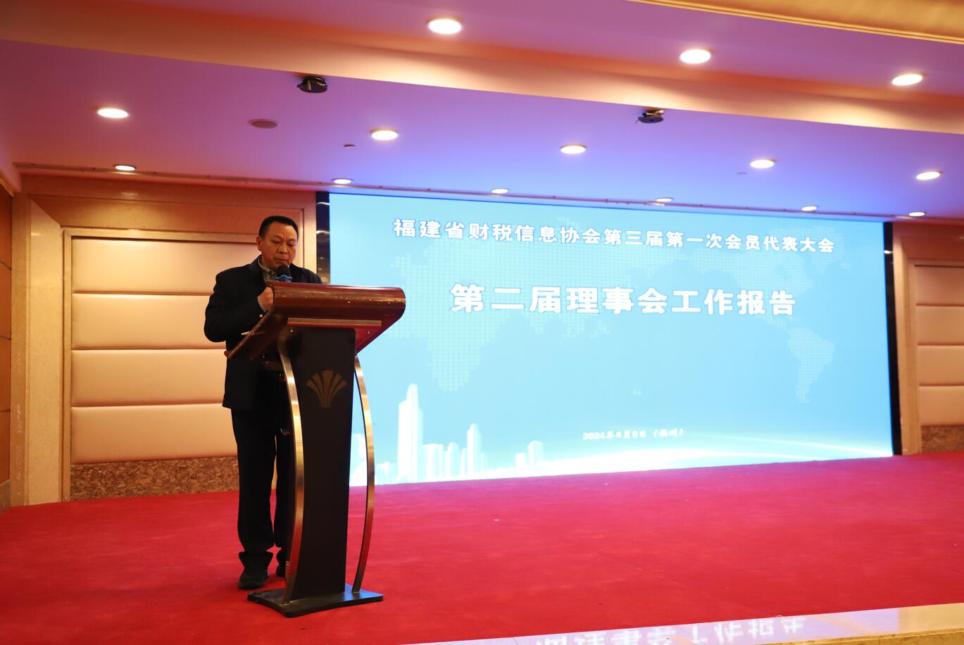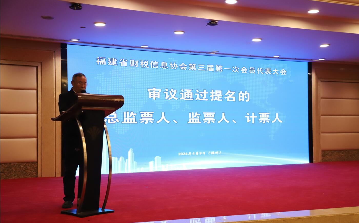 2024年4月9日,福建省財(cái)稅信息協(xié)會(huì)在福州世紀(jì)金源大飯店3樓金都宴會(huì)廳召開第三屆第一次會(huì)員代表大會(huì)。大會(huì)由中共福建省財(cái)稅信息協(xié)會(huì)支部書記龔守良同志主持,福建省財(cái)稅信息協(xié)會(huì)首任會(huì)長吳發(fā)金同志應(yīng)邀出席會(huì)議并發(fā)表指導(dǎo)講話,來自全省284家會(huì)員單位的代表參加了本次會(huì)議。