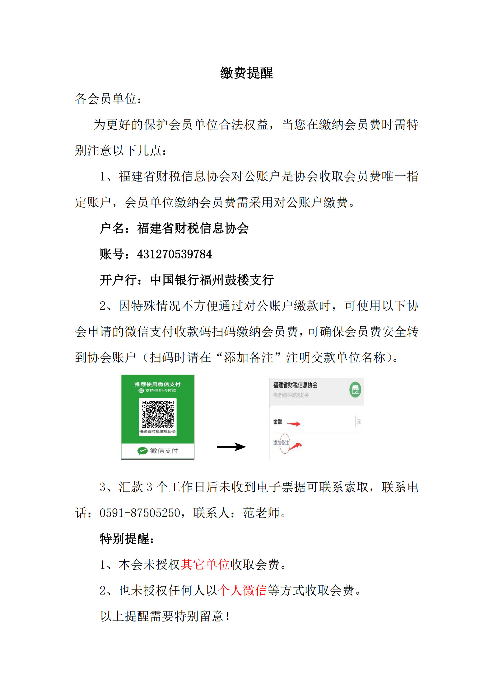 福建省財稅信息協(xié)會對公賬戶是協(xié)會收取會員費唯一指定賬戶,會員單位繳納會員費需采用對公賬戶繳費。為更好的保護會員單位合法權(quán)益,當(dāng)您在繳納會員費時需特別注意以下幾點。