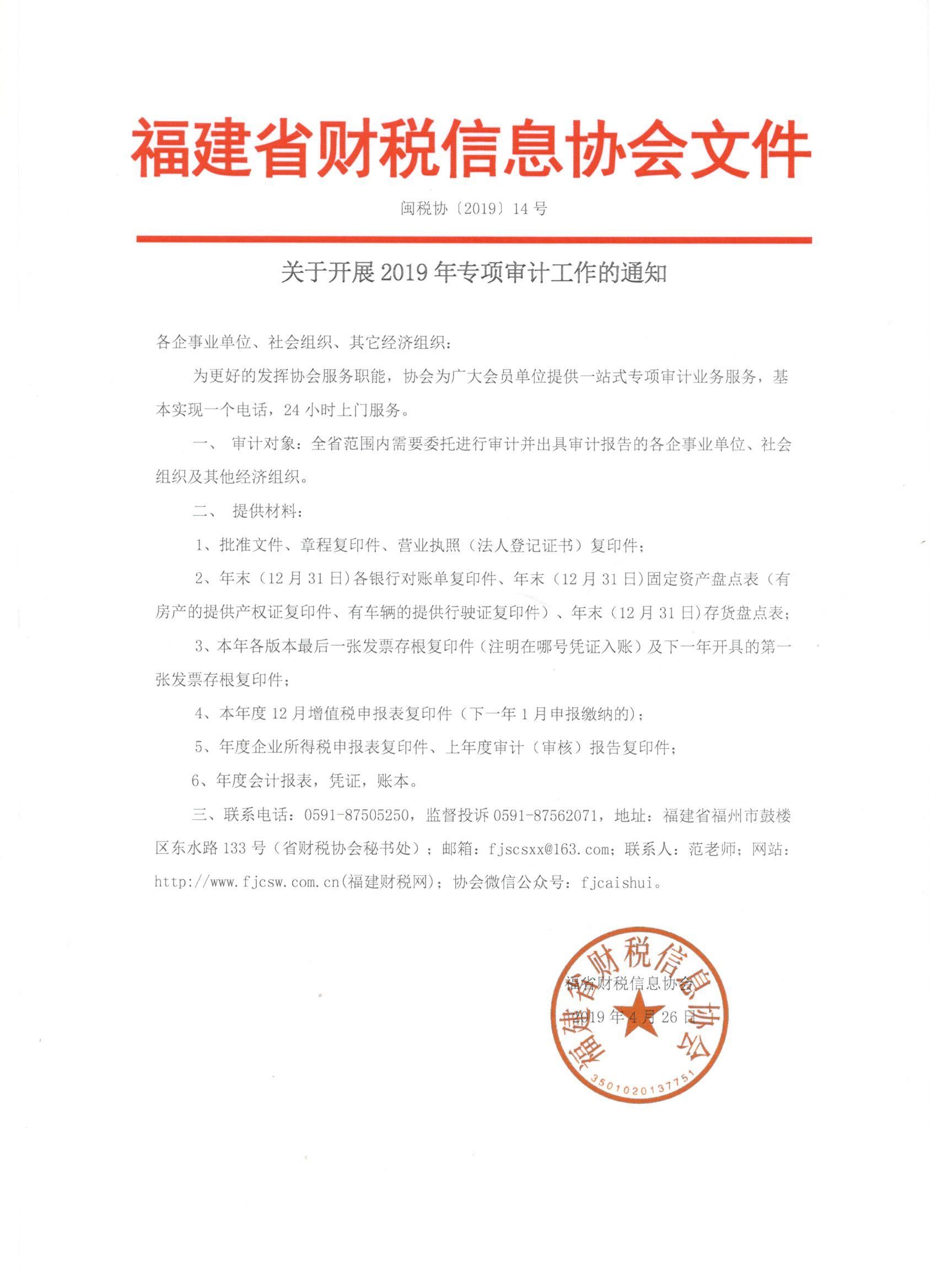 關(guān)于開展2019年專項審計工作的通知
