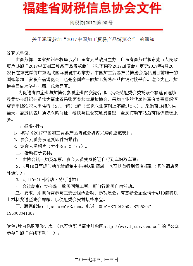 關(guān)于邀請參加“2017中國加工貿(mào)易產(chǎn)品博覽會” 的通知