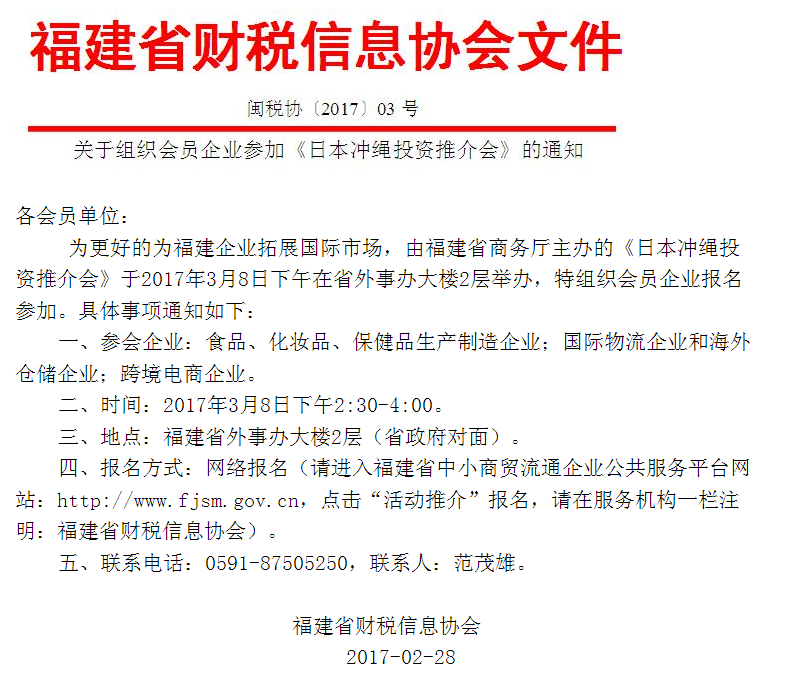 為了讓各會員單位更好地掌握最新財稅知識,本會定于2017年4月15日(星期六)在福州市六一北路468號景城大酒店舉辦第十屆財稅管理培訓班暨《增值稅會計處理規(guī)定》實務(wù)與案例專題培訓。