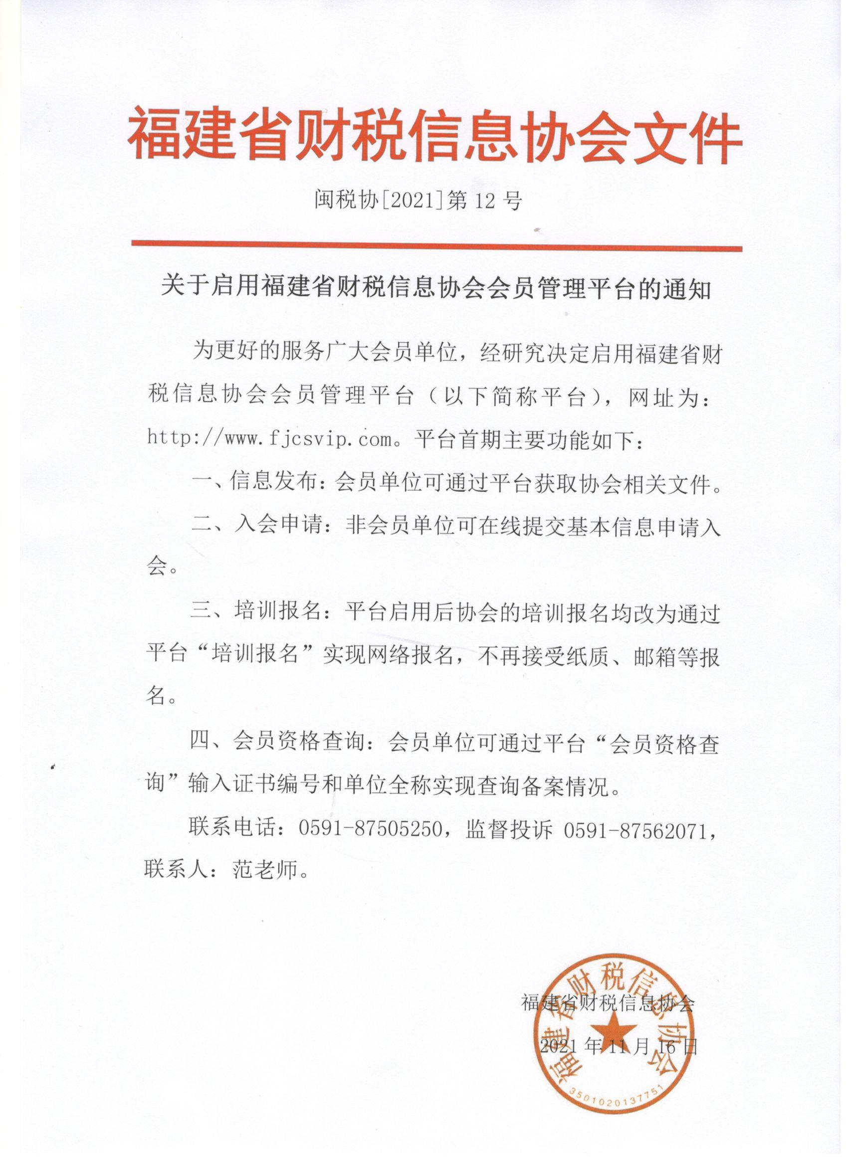 關(guān)于啟用福建省財稅信息協(xié)會會員管理平臺的通知