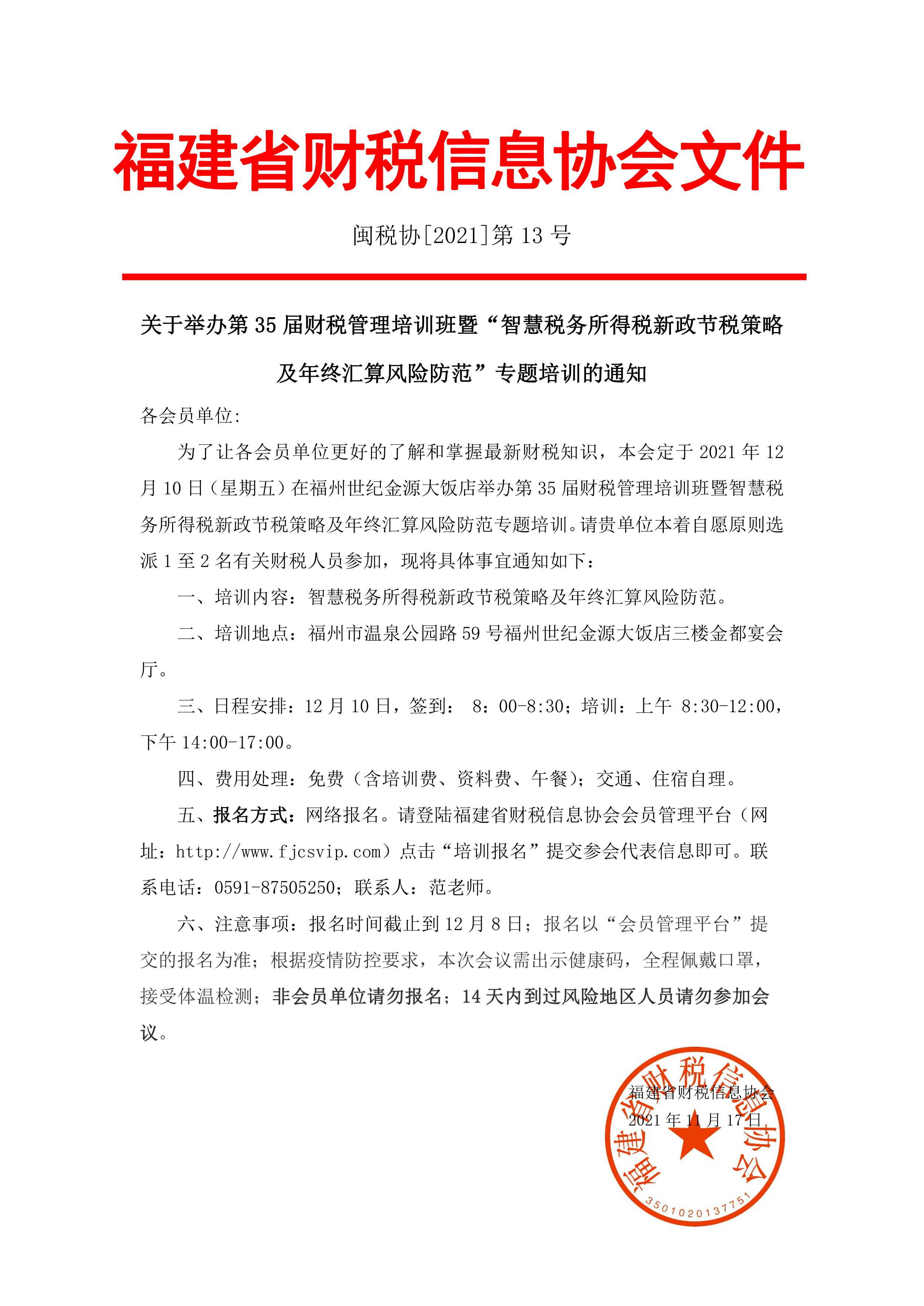 關(guān)于舉辦第35屆財稅管理培訓班暨“智慧稅務所得稅新政節(jié)稅策略及年終匯算風險防范”專題培訓的通知